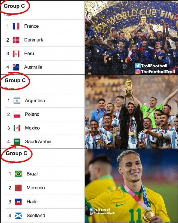 原因就是前两届世界杯冠军球队法国和阿根廷,当初都是从C组脱颖而出。不知道这一次桑巴军团和安东尼有没有能力复刻神迹。