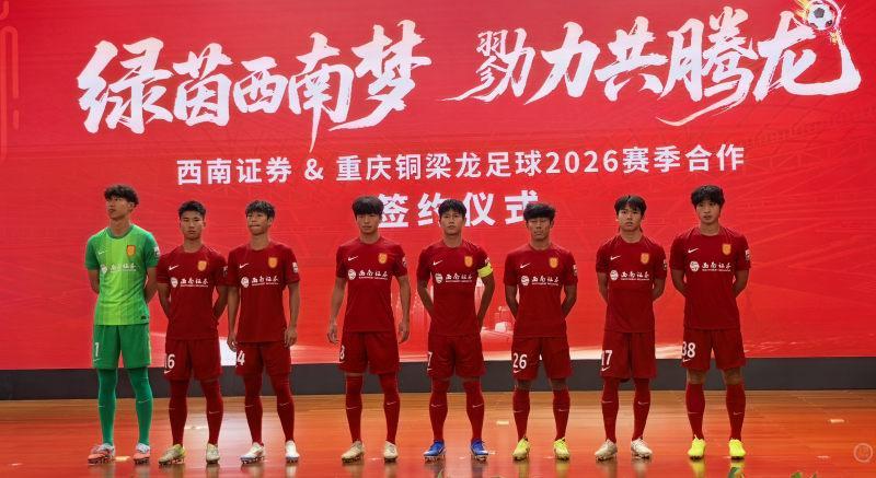 3月12日下午3点,重庆铜梁龙俱乐部和西南证券联合举行了合作签约仪式——西南证券成为了重庆铜梁龙俱乐部首席独家赞助伙伴和胸前广告赞助商。向余望、李镇全、姚浩洋、阮奇龙等重庆铜梁龙主力球员出席了本次活动,并展示了新版的主场红色球衣(首轮是客场白色球衣)。